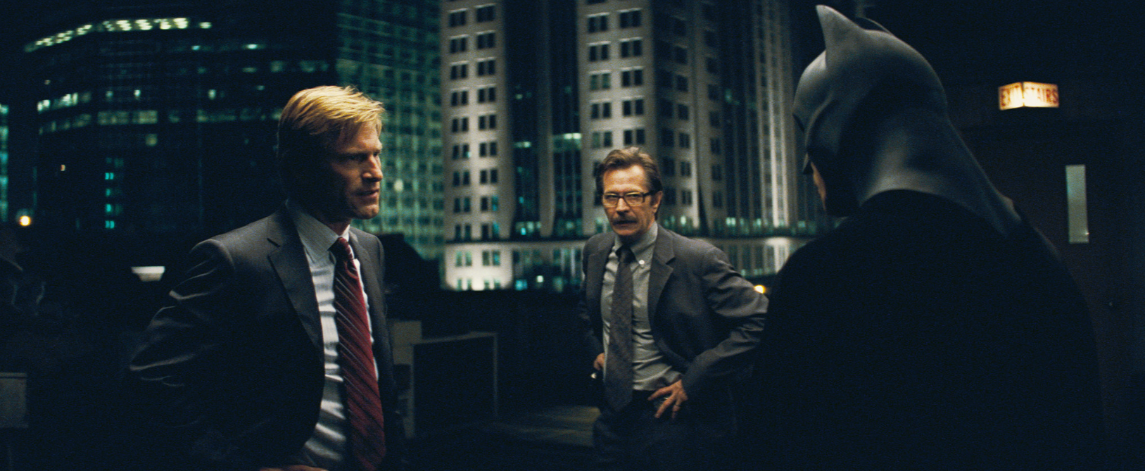 - 제임스 고든 (게리 올드만): 배트맨과 협력하며 법 집행의 균형을 지키려 하지만, 덴트의 몰락 이후 배트맨의 희생을 이해하고 동참하며 ‘진정한 정의란 무엇인가’를 행동으로 증명한다.